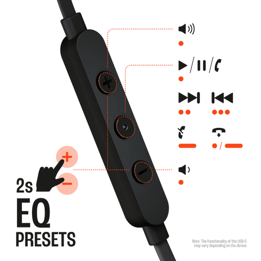 Presentamos los auriculares intraaurales JBL Tune 310C USB-C. Son ligeros, cómodos y compactos. Un par de drivers dinámicos de 9 mm ofrecen el potente sonido JBL Pure Bass, mientras que la compatibilidad con audio de alta resolución garantiza una gran calidad de sonido. La conexión USB-C los hace compatibles con una gran variedad de dispositivos como PC, móviles y dispositivos de juego. Además, los tres botones en el cable plano antienredos te permiten controlar la reproducción de música, el ajuste de volumen y los preajustes EQ, así como responder llamadas donde quieras con el micrófono integrado. Por todo esto, los JBL Tune 310C USB-C serán tus mejores compañeros, en el trabajo, en casa y donde sea.